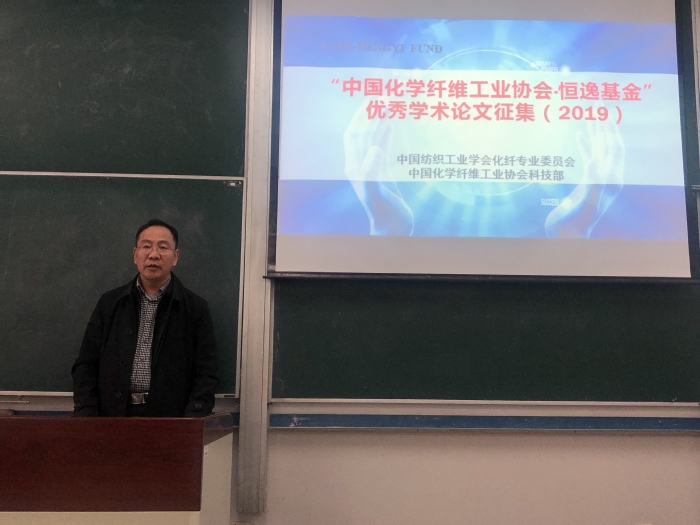 3月26日,中国化学纤维工业协会秘书长李增俊在MG冰球官网做了关于“中国化学纤维工业协会·恒逸基金优秀学术论文征集(2019)”的宣讲会报告,宣讲会由赵黎明教授主持。