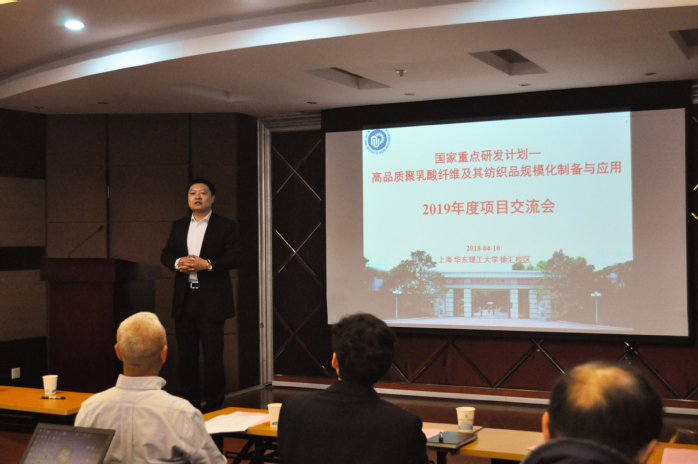 4月10日,国家重点研发计划项目“高品质聚乳酸纤维及其纺织品规模化制备与应用”进展交流暨中期自检会在MG冰球突破官网网站举办。MG冰球突破官网网站项目组成员陈涛副教授、李玉林副教授、张建副教授,东华大学余木火教授、韩克清副教授,恒天纤维集团有限公司王乐军教授级高工、财务部辛晓红总经理等项目课题组专家成员和研发骨干共计40余人参加了本次会议。