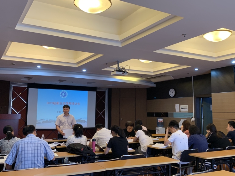 2019年9月4日下午,学院召开2019级班导师培训会,为新生班导师详细解释2019级培养方案和学籍管理条例,并回答新生班导师的各种疑问和困惑。教学副院长王启要教授,生物工程系主任白云鹏、应用生物学系主任吴海珍、食品科学与工程系主任谢静莉,2019级新生班导师,教务员等参加会议。