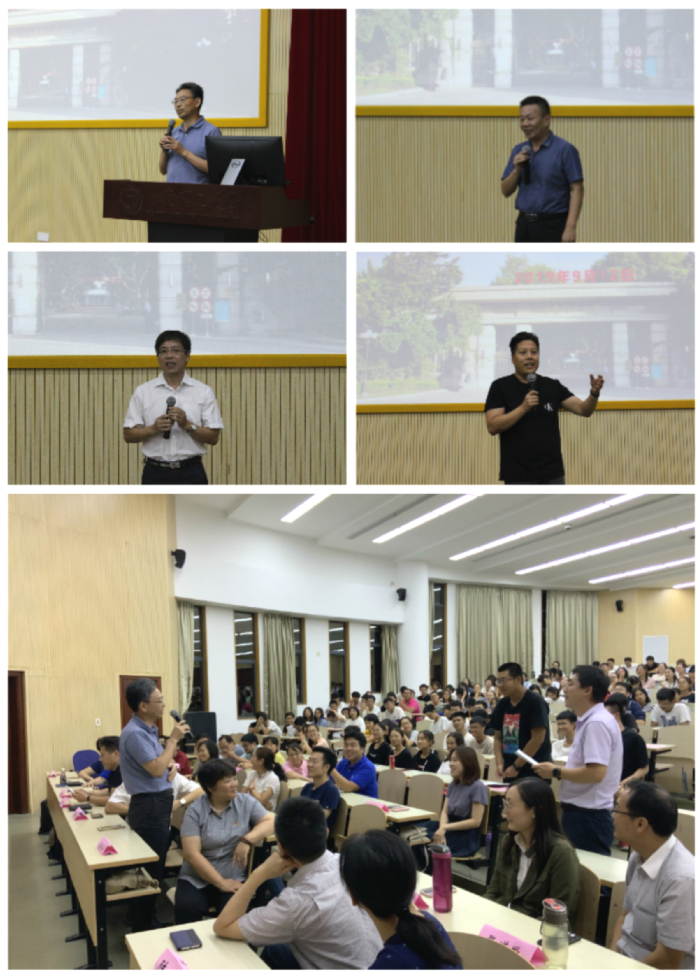 生物工程专业责任教授许建和、生物科学专业责任教授张惠展、食品科学与工程专业责任教授周家春、食品质量与安全专业责任教授刘少伟用通俗易懂、风趣幽默的语言分别介绍了所负责系所的专业领域和研究方向并解答了同学们的提问。