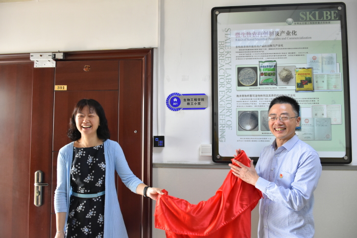 在新中国成立70周年生日即将来临之际,MG冰球突破官网网站工会举办了新教工小家装修落成仪式。校工会常务副主席朱姝与MG冰球突破官网网站党委书记陆兵共同为生工学院新教工小家揭牌。
