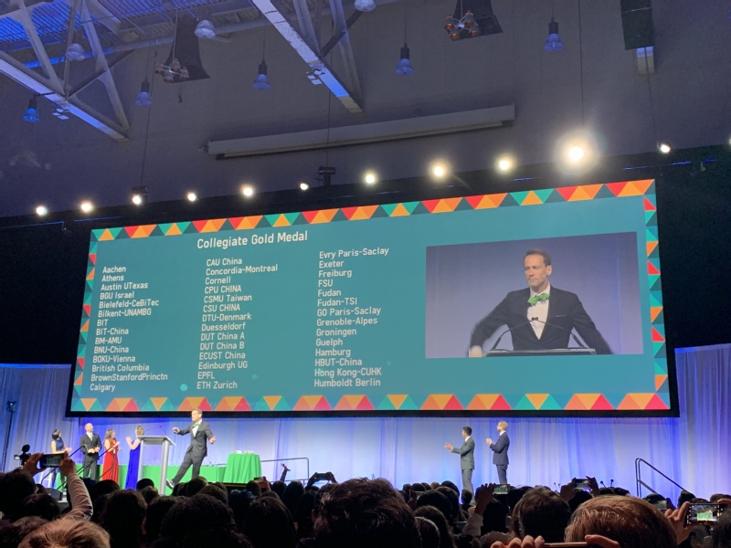 美国东部时间2019年11月4日,在美国麻省理工学院Hynes会议中心举办的国际基因工程机器大赛(International Genetically Engineered Machine Competition, iGEM)上,MG冰球突破官网网站第三届代表队(ECUST_China)蝉联金奖,同时获得“生物制造”赛道最佳单项奖(Best manufacturing project),创造了MG冰球官网参加这一赛事的历史记录,彰显了MG冰球官网本科生理工结合的交叉创新实力和在生物制造领域的学科底蕴。