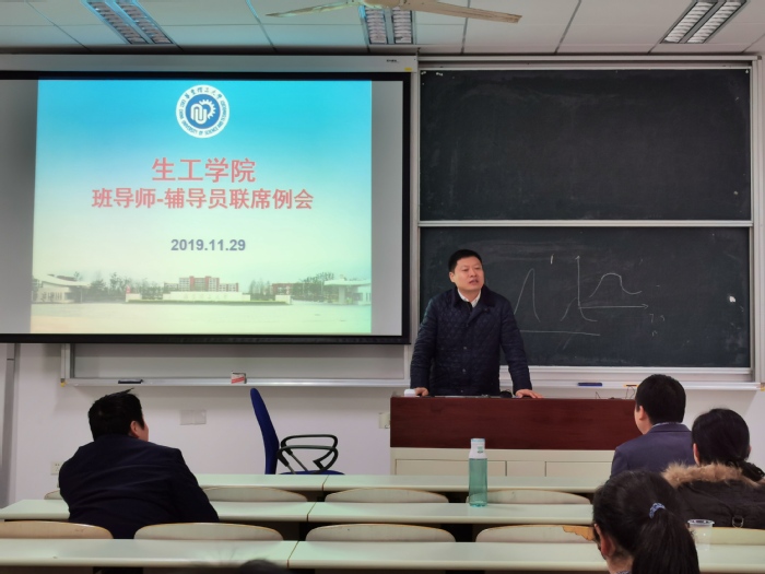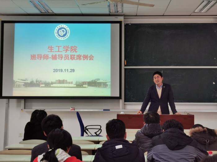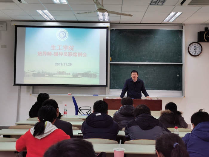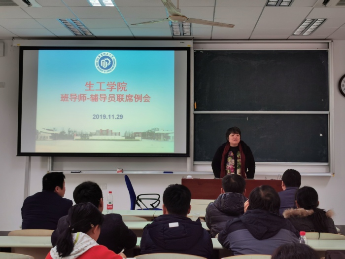 2019年11月29日,MG冰球突破官网网站在奉贤校区召开本学期第三次班导师辅导员联席会。生工学院院长庄英萍、党委书记赵黎明、副院长王启要、党委副书记左鹏,2017级-2019级班导师、教务员等参加会议。会议由教学副院长王启要主持。