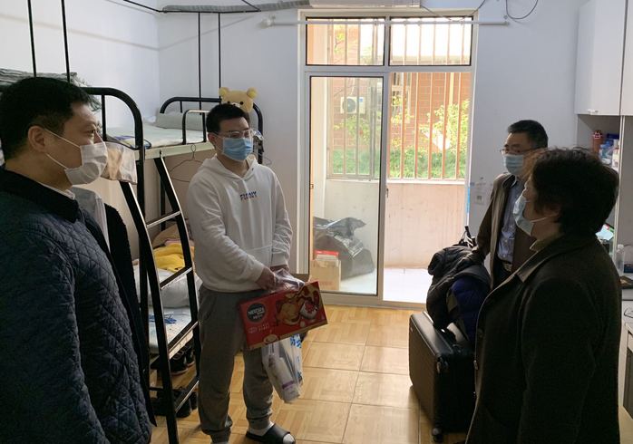 随后院领导一行来到了学生宿舍慰问我院留校学生,与同学们亲切交谈,了解他们目前在校的学习生活情况,询问大家在校还有什么需求和困难,并就同学们关心的问题作了详细解答,嘱咐大家在校安心学习,毕业班的同学好好梳理之前的课题研究,准备毕业论文初稿,同时也要通过网络平台积极主动投递简历,落实工作。留校学生纷纷表示,非常感谢院领导的再次看望关心,在校期间学校和学院尽力为大家提供了学习和生活保障,疫情期间学校是让大家感觉最安全的地方,在新学期将继续努力争取更大的成绩。