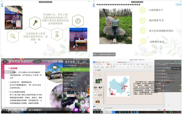 生工学院积极组建青年战“疫”讲师团,分别开展了两场以“志道弘毅,砥砺前行”和“青春战‘疫’,聚力前行”为主题的战“疫”宣讲活动,讲师团成员从不同角度分享自己战“疫”的志愿经历与感受。19级秋博班邹振平同学的父亲作为医护工作者冲在一线,除夕夜都没吃上一口饺子,他本人也在父亲的感召下,积极加入当地抗“疫”志愿队伍;生技172班解晨笛同学分享了自己勇敢加入志愿者队伍,宣传防疫知识,守卫社区邻里健康的感人故事;19级生工专硕班王明睿同学讲述了帮助村民采购物品、守护村口安全的志愿经历,并提出作为青年人应该用青春坚守初心,用拼搏浇筑硕果;食工182班靖睿同学分享了帮助当地店铺复工复产的志愿工作,在她的眼里,最好的青春莫过于把个人奋斗融入祖国建设,经历过拼搏、进取、奉献,才是青春最亮的底色。