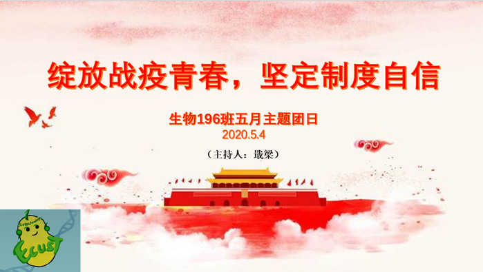 围绕“绽放战‘疫’青春,坚定制度自信”的主题,生工学院各团支部发挥专业特色,开展了创意满满、形式多样的线上团日活动。生科172班发挥专业力量,组织班级同学云上抗“疫”,分享分析新冠病毒相关专业文献,形成近34000的调研报告;食科182班进行“云”升旗、“云”宣誓等活动,敬意汇于屏幕,誓言铮铮有力;生物196班组织支部同学学习习近平总书记系列重要讲话,坚定中国特色社会主义制度自信……,本次主题团日活动内容丰富,充分彰显了团员青年先进性,绽放着青春的夺目光彩。