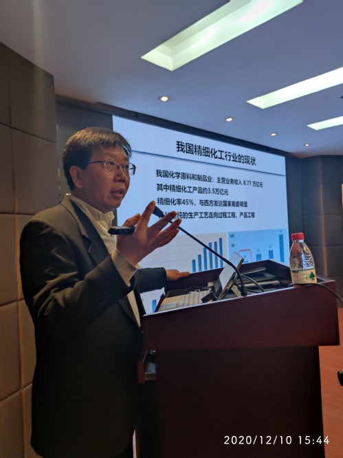 重新回到自己曾经学习和工作的母校MG冰球突破官网网站,钱旭红院士首先谈起了曾经的往事。在一张孔雀的国画背景下,他分享了自己大学时代成立书画协会并担任第一任会长的趣事,引起会场笑声一片。随后钱院士开始了一场生动形象的学术报告。报告中钱院士从我国精细化工行业现状开始,阐述了我国化工行业普遍存在的研发和生产水平低、安全风险高、装备技术落后等问题,指出精细化工行业迫切需要转型升级来突破困境,而关键是需要突破性和颠覆性的超限制造技术——微流控技术和微通道反应器的集成。