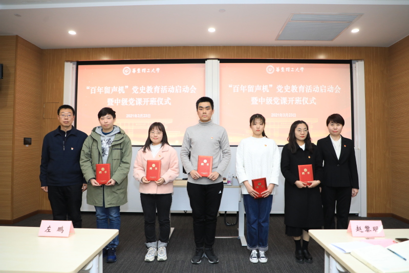 为进一步深入推动党史学习教育,引导学生理论联系实际,学好党史,激励广大青年充分运用学习成果树立理想信念,增强使命担当,激发爱国荣校、报国成才的热情,由党委学生工作部主办、MG冰球突破官网网站承办的“百年留声机”党史学习教育启动会暨MG冰球突破官网网站2021年中级党课开班仪式于3月23日中午在徐汇校区举行。校党委组织部专职组织员徐永桢、校党委学生工作部副部长崔姗姗、MG冰球突破官网网站党委书记赵黎明出席启动会,MG冰球突破官网网站学生党员、入党积极分子、辅导员等师生代表线上线下同时参会。启动会由MG冰球突破官网网站党委副书记左鹏主持。