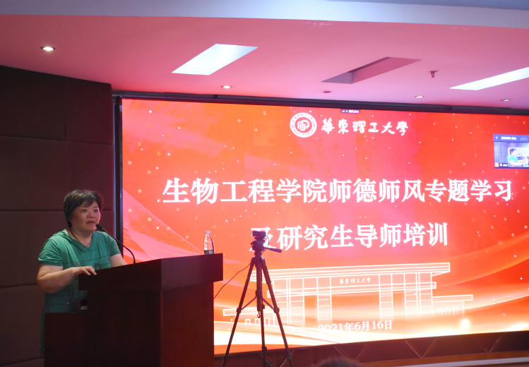 为全面贯彻习近平总书记关于教育的重要论述和全国教育大会精神,全面落实立德树人根本任务,加强新时代师德师风建设,6月16日,MG冰球突破官网网站召开师德师风专题学习会及研究生导师培训。邀请MG冰球官网人事处党委教师工作部副部长张雪芹作师德师风建设专题报告,会议由MG冰球突破官网网站党委副书记陆兵主持。生物工程学院党政班子成员、研究生导师现场参加培训,其他教师通过腾讯会议在线参加。