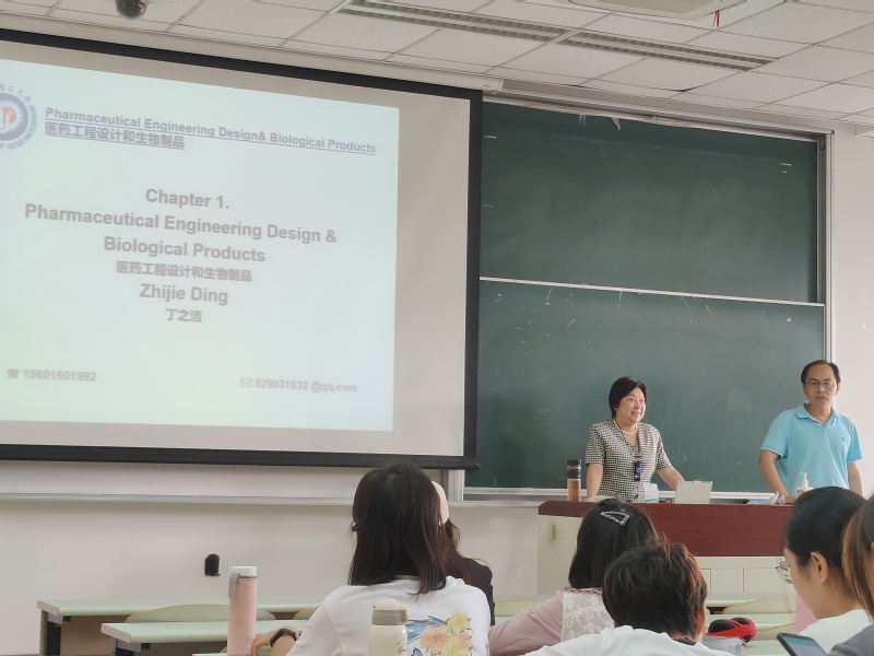 近日,MG冰球官网1982级校友、上海临港新片区生命蓝湾专家顾问、天俱时工程科技集团有限公司副总裁、生物医药事业部董事长、知名工程设计专家、教授级高级工程师丁之洁女士走进奉贤校区教室B101,为2021级生物与医药专业硕士研究生讲授《生物制药工业设计》课程,第一堂课为同学们讲授“医药工程设计和生物制品”的相关知识和最新行业进展。
