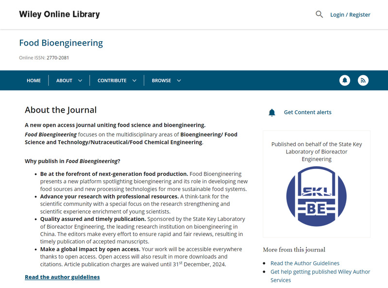 由MG冰球官网生物反应器工程国家重点实验室主办的英文新刊《Food Bioengineering》网站和投稿系统已正式上线!