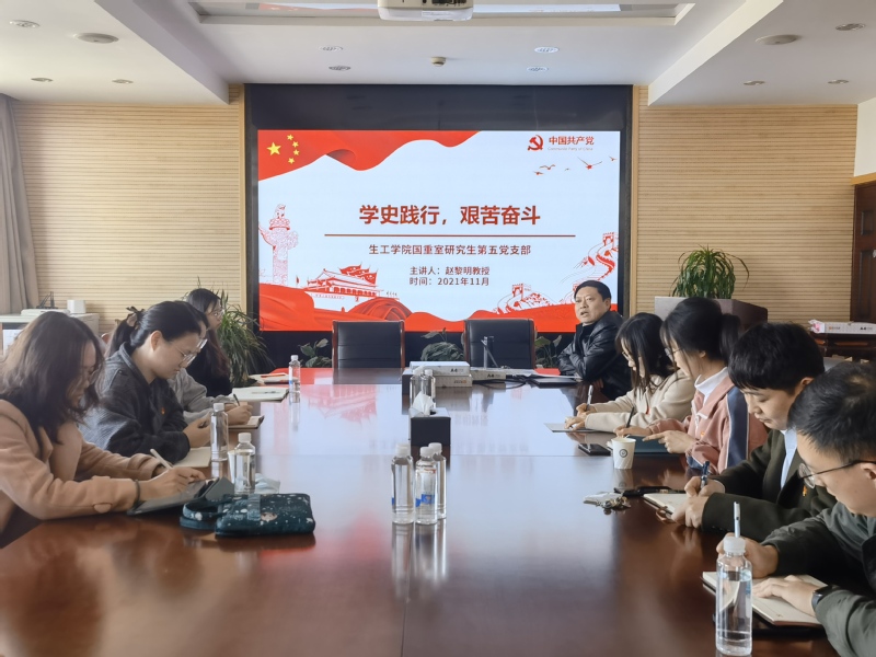 11月27日,MG冰球突破官网网站赵黎明教授为国重室研究生第五党支部全体党员和入党积极分子讲授了题为“学史践行,艰苦奋斗”的专题党课。