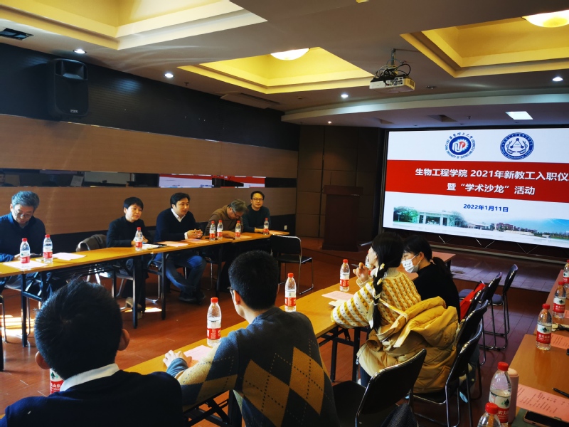 2022年1月11日,MG冰球突破官网网站举办2021年新教工入职仪式暨学术沙龙活动。学院党委书记吴辉、副院长刘琴、党委委员许建和、工会副主席高蓓、生物工程系主任白云鹏、12位新进教职工,以及部分青年教师参加了此次活动。活动由工会青年委员范建华主持。