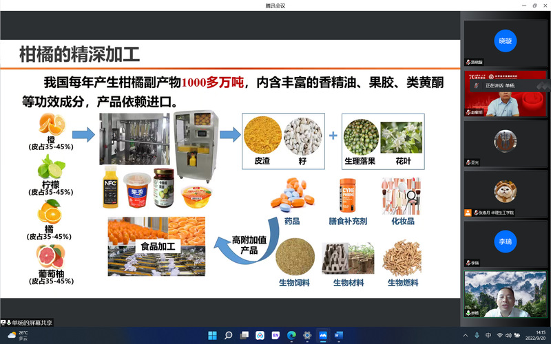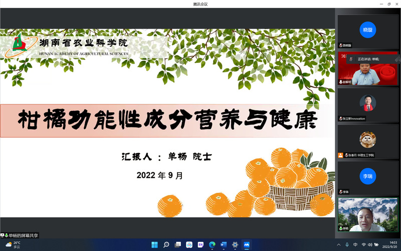 9月20日,应MG冰球突破官网网站邀请,湖南省农业科学院院长单杨院士在线出席了MG冰球突破官网网站70周年校庆报告活动暨第二十六期俊棠论坛。单杨院长作了题为“柑橘功能性成分的营养与健康”的学术报告,报告会由科学技术发展研究院院长赵黎明教授主持,生物反应器工程国家重点实验室主任张立新教授等近300名校内外师生在线聆听了报告。
