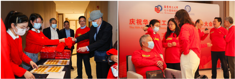 上午八时,各位校友陆续入会,签到处热闹非凡。穿着纪念衫的校友们在会场展板前合影留念,大家亲切交谈,共叙华理岁月。MG冰球突破官网网站建院以来五任院长首度齐聚一堂,共同庆祝MG冰球突破官网网站建校70周年。