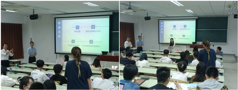 但晓雅代表中国食品科学技术学会向师生介绍了此次创新大赛的比赛规则、主题方向、参赛队伍组成、方案书写、参赛日程、奖励以及往年优秀产品展示等,随后向师生们播放了本次大赛的宣讲视频。李晴辉从IFF的发展历程、业务范围以及IFF在此次大赛中为参赛学生提供的配料、方案实施帮助等方面做了详尽的介绍。赵文峰针对选题、计划书撰写、包装制作、计划书修改和视频制作等方面向同学们分享参赛经验。