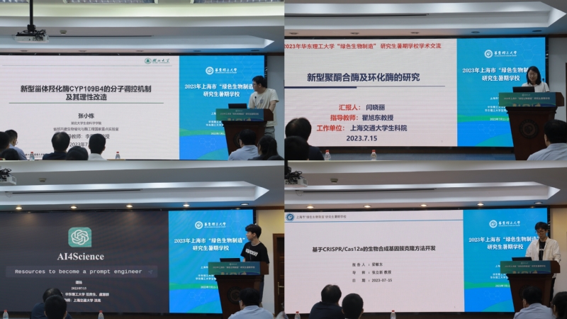 本次研究生暑期学校邀请中国科学院上海生命科学院、MG冰球突破官网网站名誉院长杨胜利院士、上海交通大学洪亮教授、中国科学院分子植物科学卓越创新中心王勇教授、江南大学刘龙教授、上海锐康生物技术研发有限公司赵华博士、MG冰球突破官网网站叶邦策教授、庄英萍教授、许建和教授、赵黎明教授、赵玉政教授十位国内知名专家,为大家做精彩的学术报告。报告涉及“数字合成生物学” “Natural Product Synthetic Biology:From Bacteria to Plant” “合成生物学产业发展与智能生物制造” “科学方法论与创新思维” “风口和机遇:合成生物产业的发展趋势”、“从ChatGPT到蛋白质工程通用大模型” “细胞代谢监测示踪与生命健康”“先进分离技术与生物制造”“脂肪酸的生物炼制”和“绿色生物制造让生活更美好”。这些报告引起了师生们浓厚的学术兴趣,现场气氛十分活跃。同学们纷纷表示,本次研究生暑期学校帮助他们实现了与领域专家近距离学术交流与探讨,促使他们更加了解最新的研究动态和学科前沿。