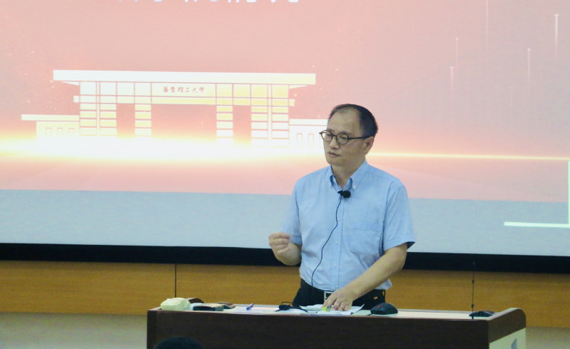 左鹏为研究生新生详细介绍了学院研究生培养情况,重点强调同学们要恪守学术道德与学术规范,认真学习实验室安全操作规范,保障个人安全。左老师寄语新生早日做好规划,在未来的研究生阶段学有所成。