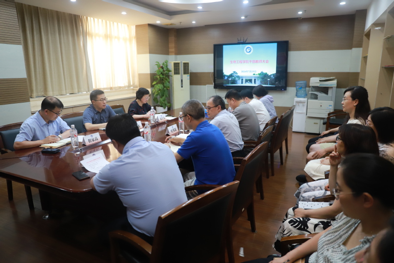 7月19日下午,生工学院召开干部教师大会,宣布学校党委关于生工学院党委书记的任命决定。校党委副书记、纪委书记龚跃,校党委常委、组织部部长夏江雯,以及生工学院党政领导班子成员、系所中心负责人、教师党支部书记和教师代表等参加会议。会议由夏江雯主持。