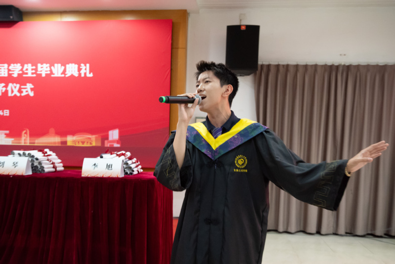 毕业典礼上,毕业生卢文升、张永杰深情献唱,道出与母校、同学们的不舍与祝愿。在悠扬的歌声中,MG冰球突破官网网站毕业典礼圆满结束。
